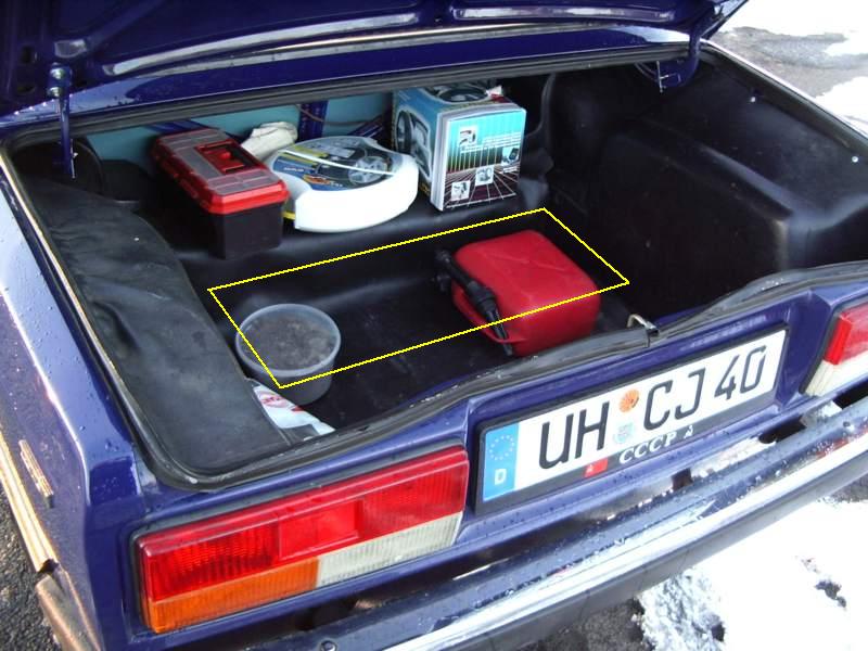 | rostfreie Ladas.. | ..gibt es vermutlich wirklich nicht. So hatte auch dieses Fahrzeug Rost im Bereich des Bodenblechs und der hinteren Kotflügel und Radläufe. Da ich hinten den Gastank nicht in ein rostendes Fahrzeug einbauen lassen wollte, erfolgte eine ziemlich umfassende (und damit teure) Reparatur der hinteren Kotflügel und des Bodenblechs. Nun war alles bereit für die Gas-Anlage. |