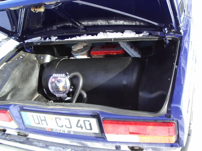 | Mit dem Gas: | Es geschehen doch noch Zeichen und Wunder! Am 8. Februar wird mein Anruf im Autohaus tatsächlich mit den Worten beantwortet: "Ihr Fahrzeug ist fertig und kann abgeholt werden!" Jetzt wirds interessant. Ich fuhr also mit dem Zug nach Erfurt und begab mich ins Autohaus. Da stand er. Äußerlich ja unverändert, aber als ich den Kofferraum sah, bakam ich ein Gefühl davon, was "groß" bedeutet. Viel war vom riesigen Lada-Kofferraum nicht mehr übrig geblieben, aber das wollte ich ja so. Ein Tank in der Form des Reserverades hätte zwar auch gepasst, aber max die Hälfte an Volumen geboten. Ausserdem ist Autofahren ohne Reserverad irgendwie doof. Es folgte eine kurze Einweisung in die Bedienung. Die BRC-Just-Anlage bietet gleich drei Schalterstellungen. Neben den üblichen "Benzin" und "Automatik"-Programmen hat man hier sogar eine reine Gas-Stellung, in der sogar mit Flüssiggas gestartet werden kann. Grade im Winter wird dies allerdings nicht empfohlen. Im Motorraum hat sich ebenfalls einiges verändert. Ein riesiger Verdampfer und gleich kiloweise Schläuche und Ventile. Ziemlich klein, aber an unzähligen Kabeln angeschlossen, das logische Herz der Anlage: Das Steuerteil. Im Ansaug-Trakt erkennt man eine neue Zwischenplatte aus Aluminium, an der die eigentliche Gas-Zuführung angeschlossen ist, und an der Einspritzanlage den Drosselklappensensor, der die Gas-Anlage steuert. Hier die "Nachher"-Bilder: |