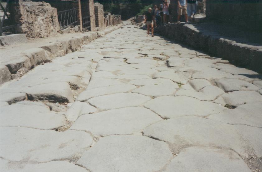 Die Spuren der Wagenräder auf den Straßen von Pompei.