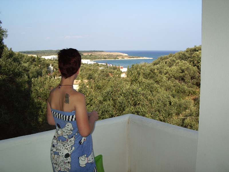 Micha: Ein Blick vom Balkon des Obergeschosses der `Villa Kostas` in Agios Spiridon auf die `Molos Bucht`. Die `Villa Kostas` haben wir in recht desolaten Zustand vorgefunden. Ich hatte schon vor Jahren mit Kostas dem Eigentümer über dringende Instandsetzungen gesprochen. Umsonst.
